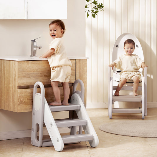 Foldable Toddler Step Stool for Bathroom Sink, Adjustable 3 Step Stool for Kids Toilet Potty Training Stool, Child Kitchen Counter Stool Helper, Plastic Ladder for Toddlers