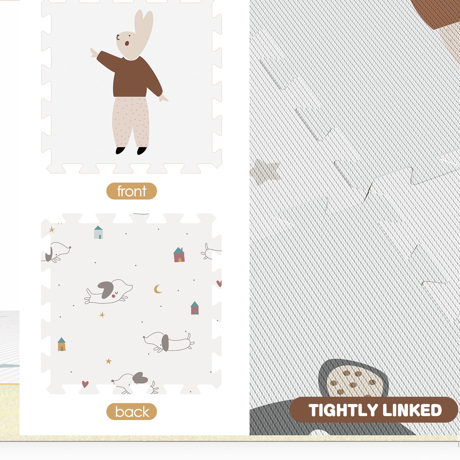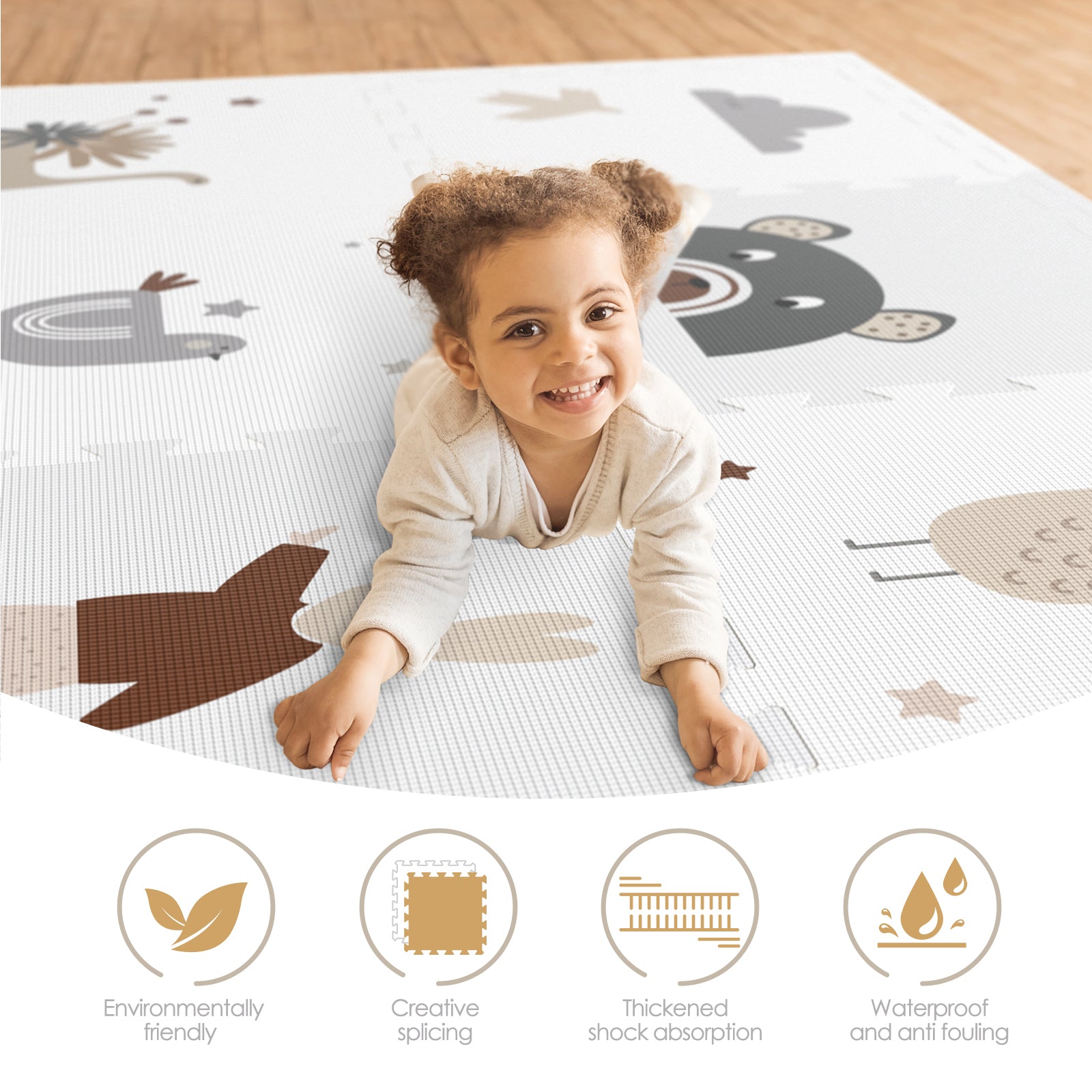 【Widely Use】This foam playmat for babies is suitable for both indoor, outdoor and baby play gym, ideal for any play areas at home or in public places. It's suitable for all sorts of infant activities such as tummy time, crawling, learning to walk, playing, and sleeping, ensuring the safety of the baby's first step in life.